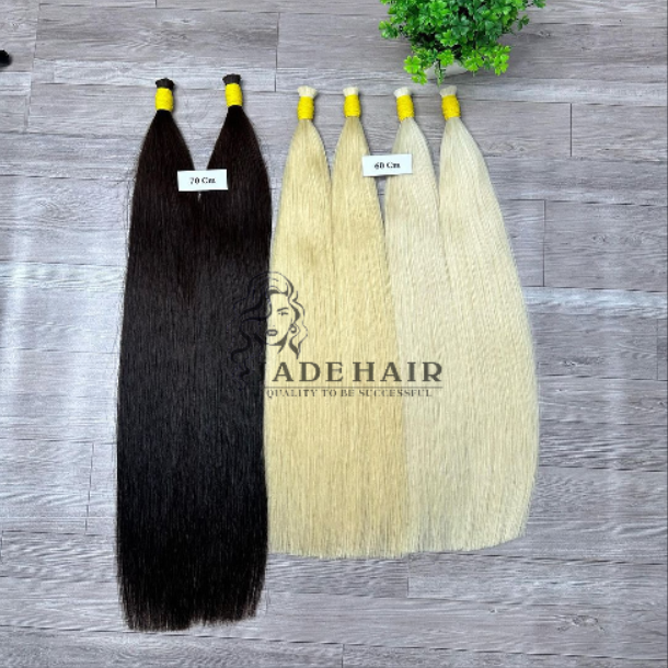 | ADVANTAGES | 1) 100% Remy hairs, full, shiny, silky 2) Full cuticle in the same direction 3) Easy to blech, dye, and iron 4) Very clean, natural, soft, combo easily. |
